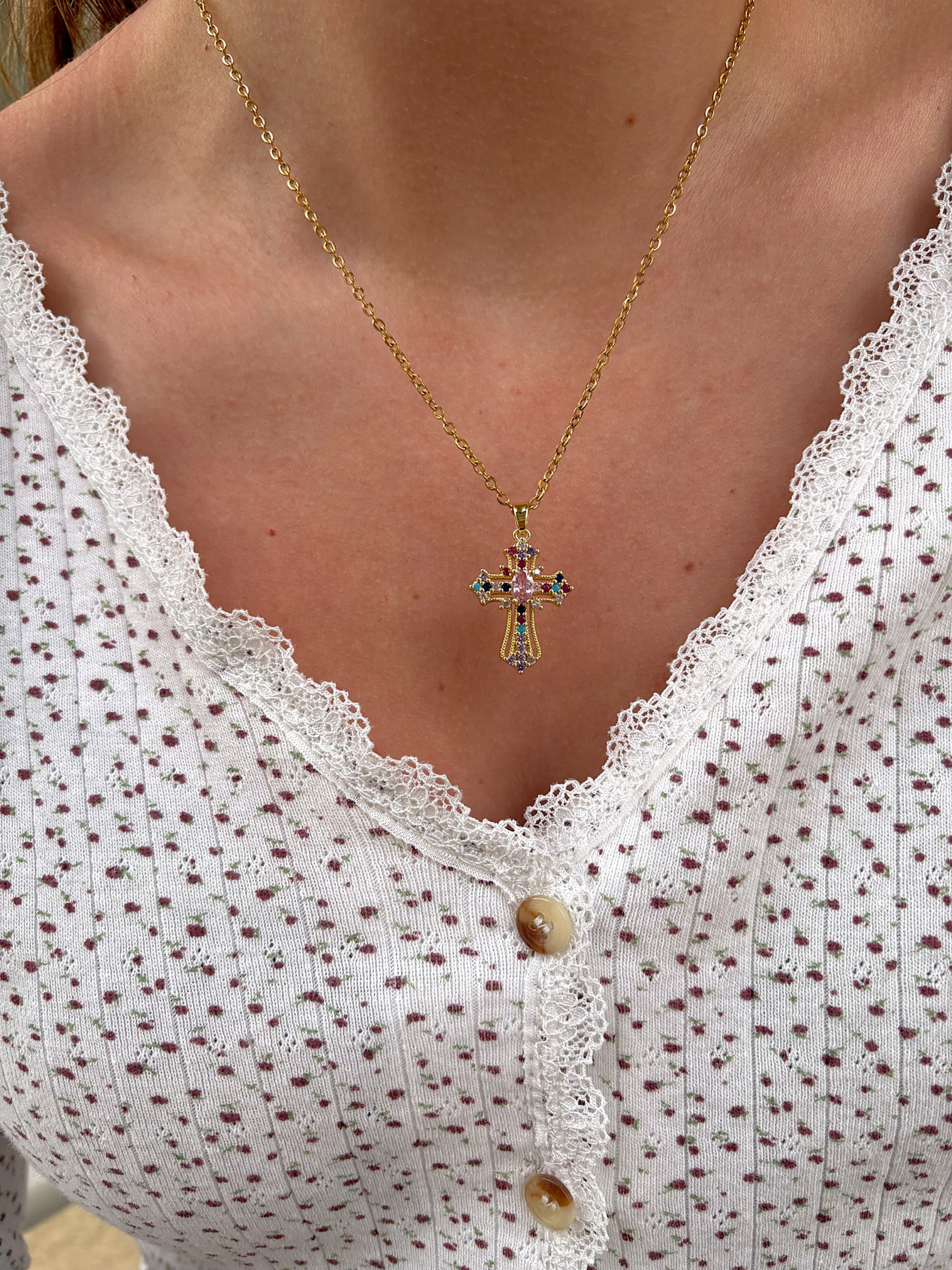 24k gold filled and cubic zirconia cross charm