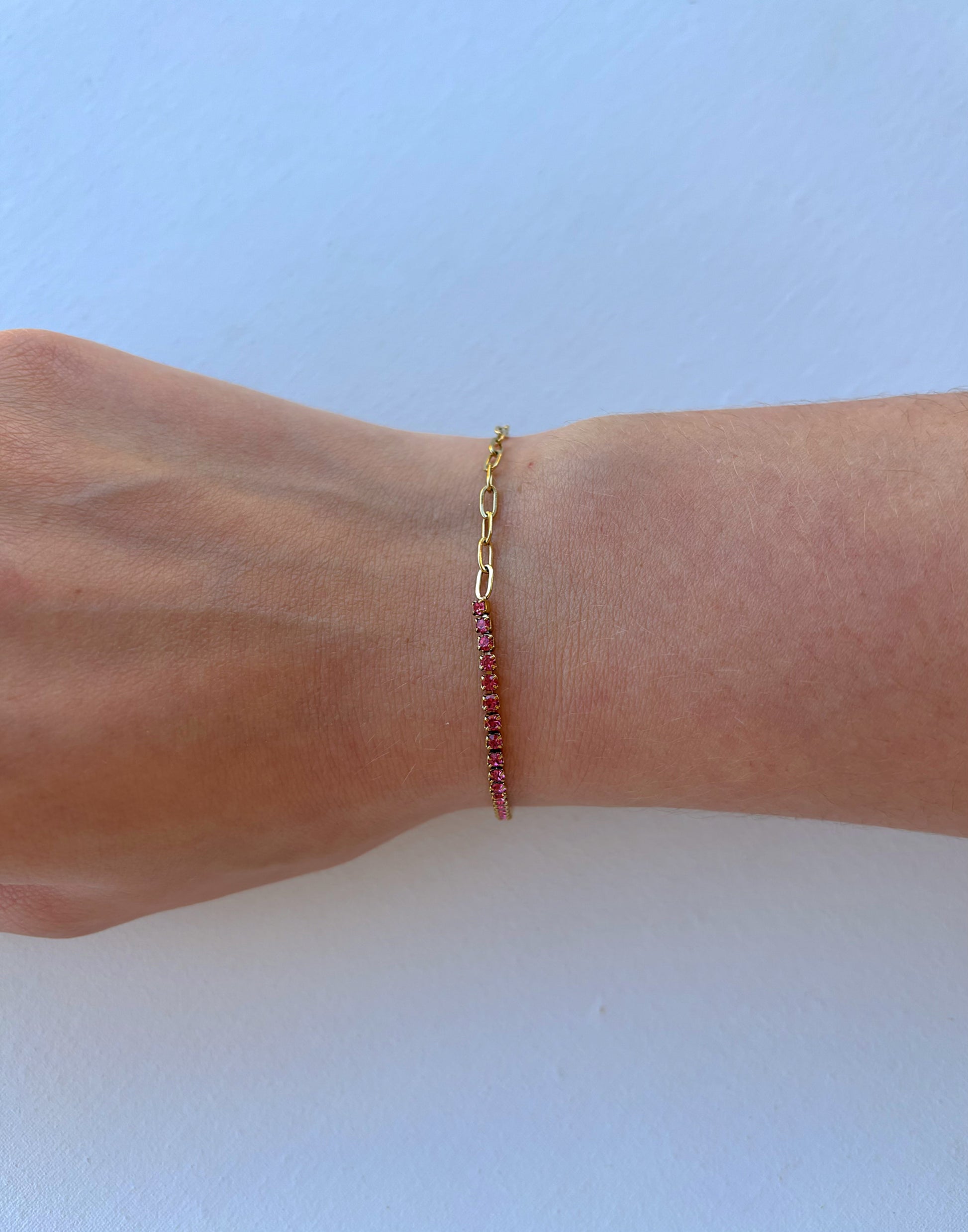 Stainless steel half & half style bracelet. Half Cubic Zirconia tennis style, half dainty paper clip. Comes with extension.