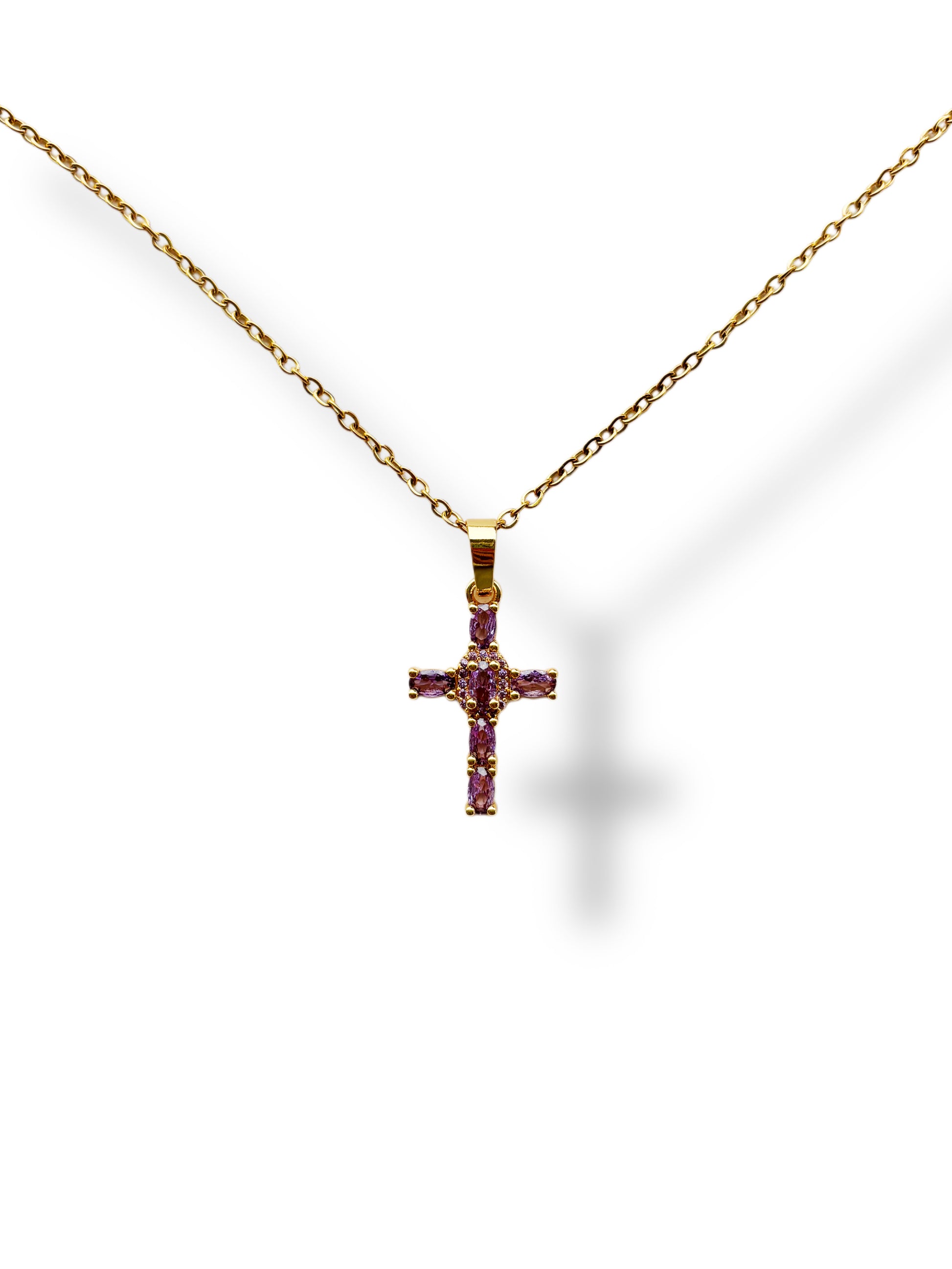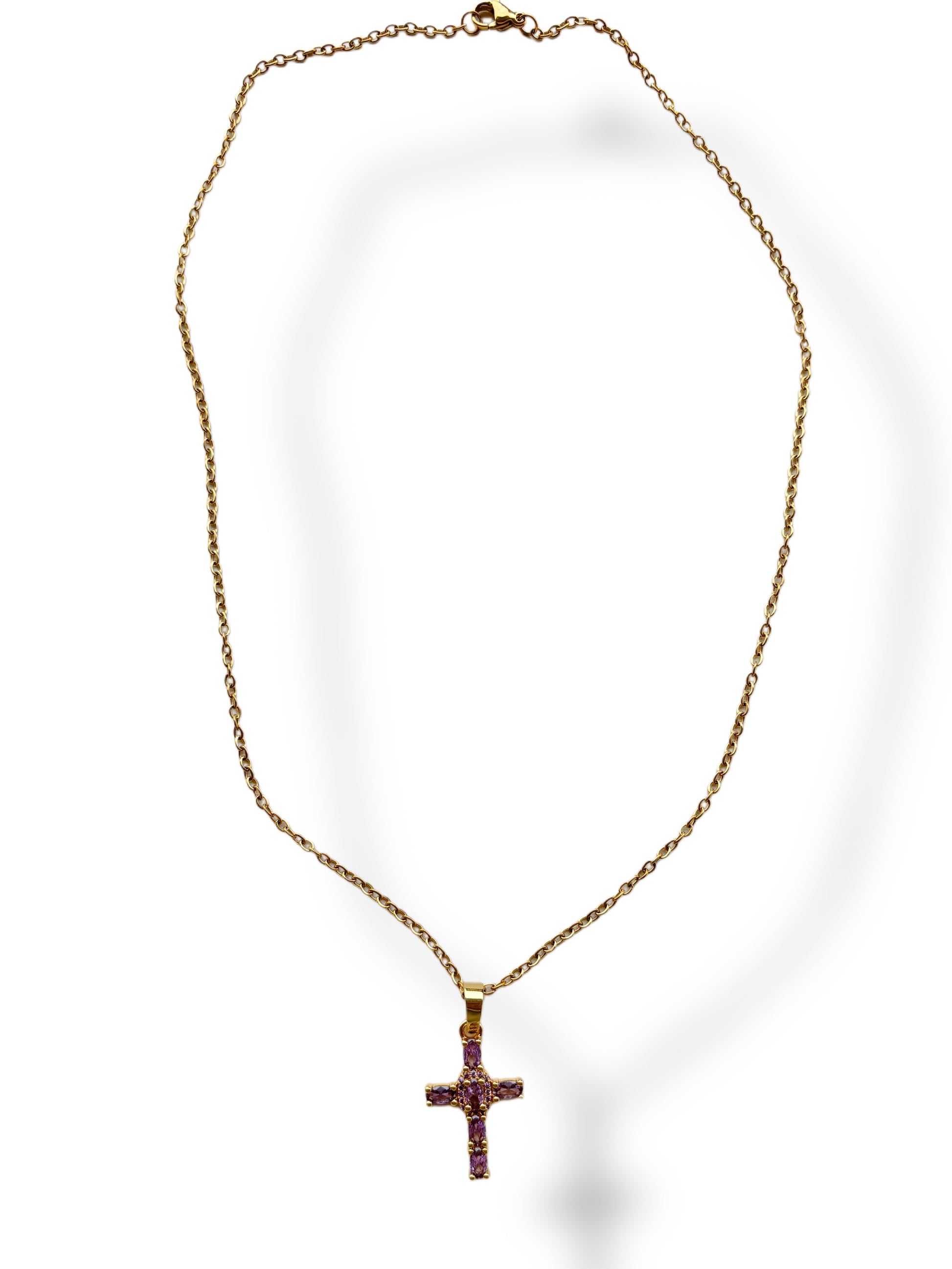 16k Gold Filled and cubic zirconia charm on 18in stainless steel chain