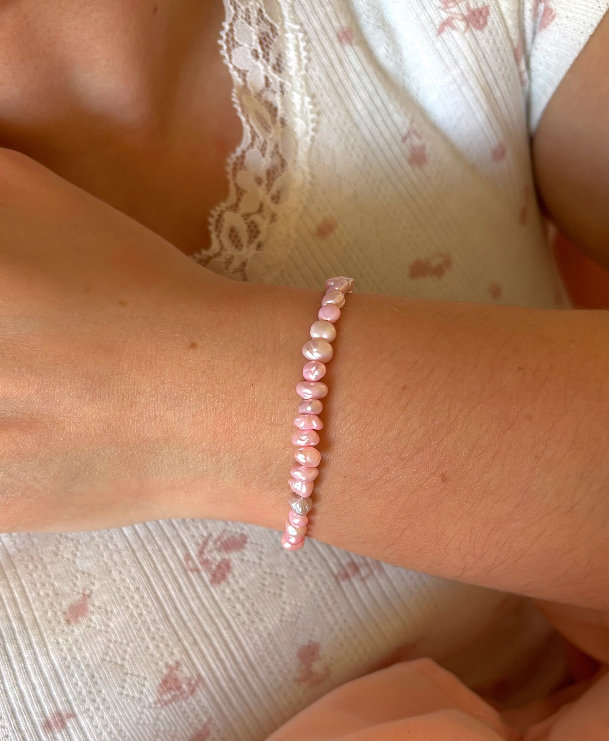Baby pink freshwater pearl bracelet with stainless steel findings