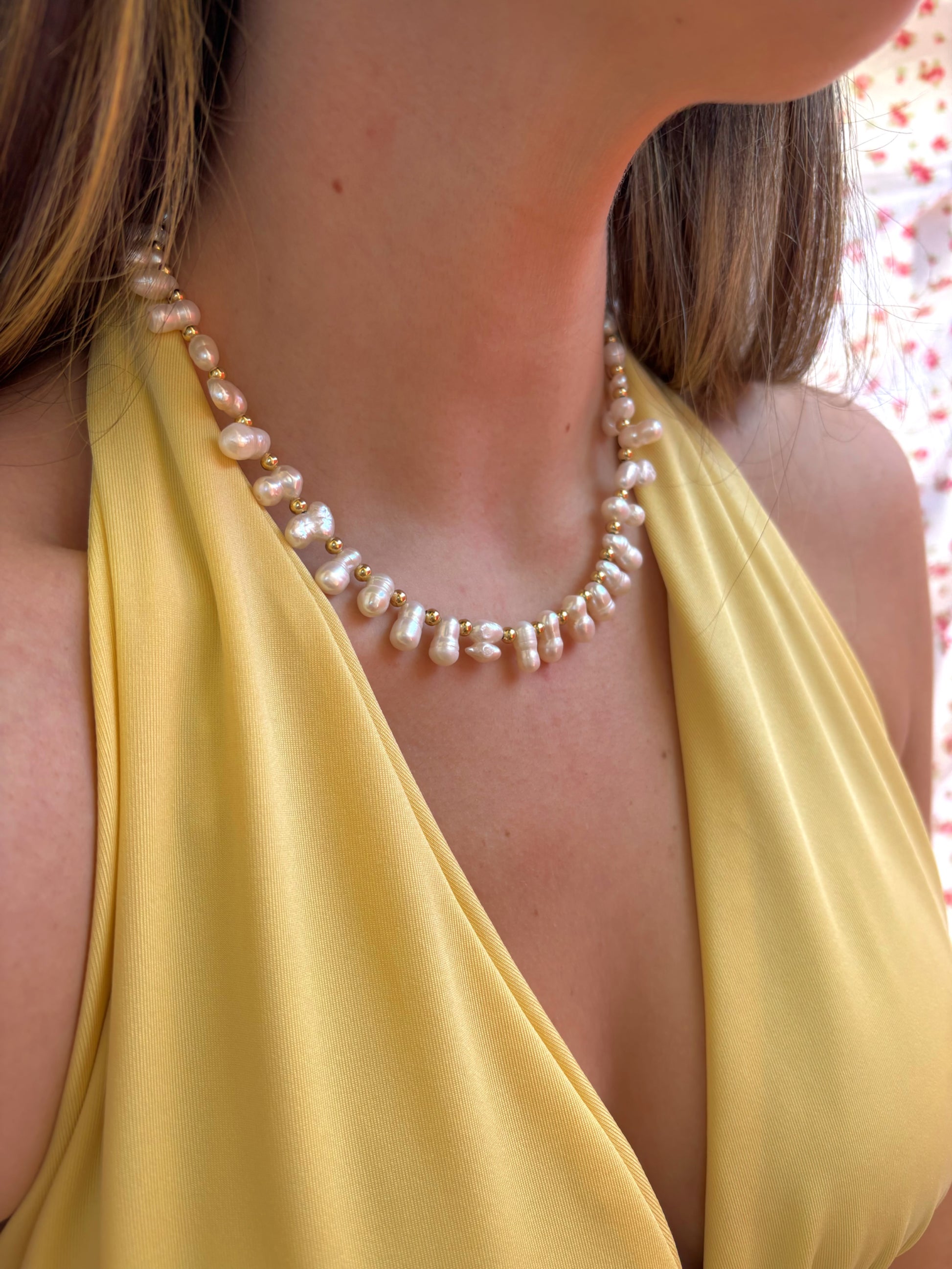 Freshwater Pearl & stainless steel beaded necklace. The PERFECT necklace to layer with!! (Last slide) 🫶🏼