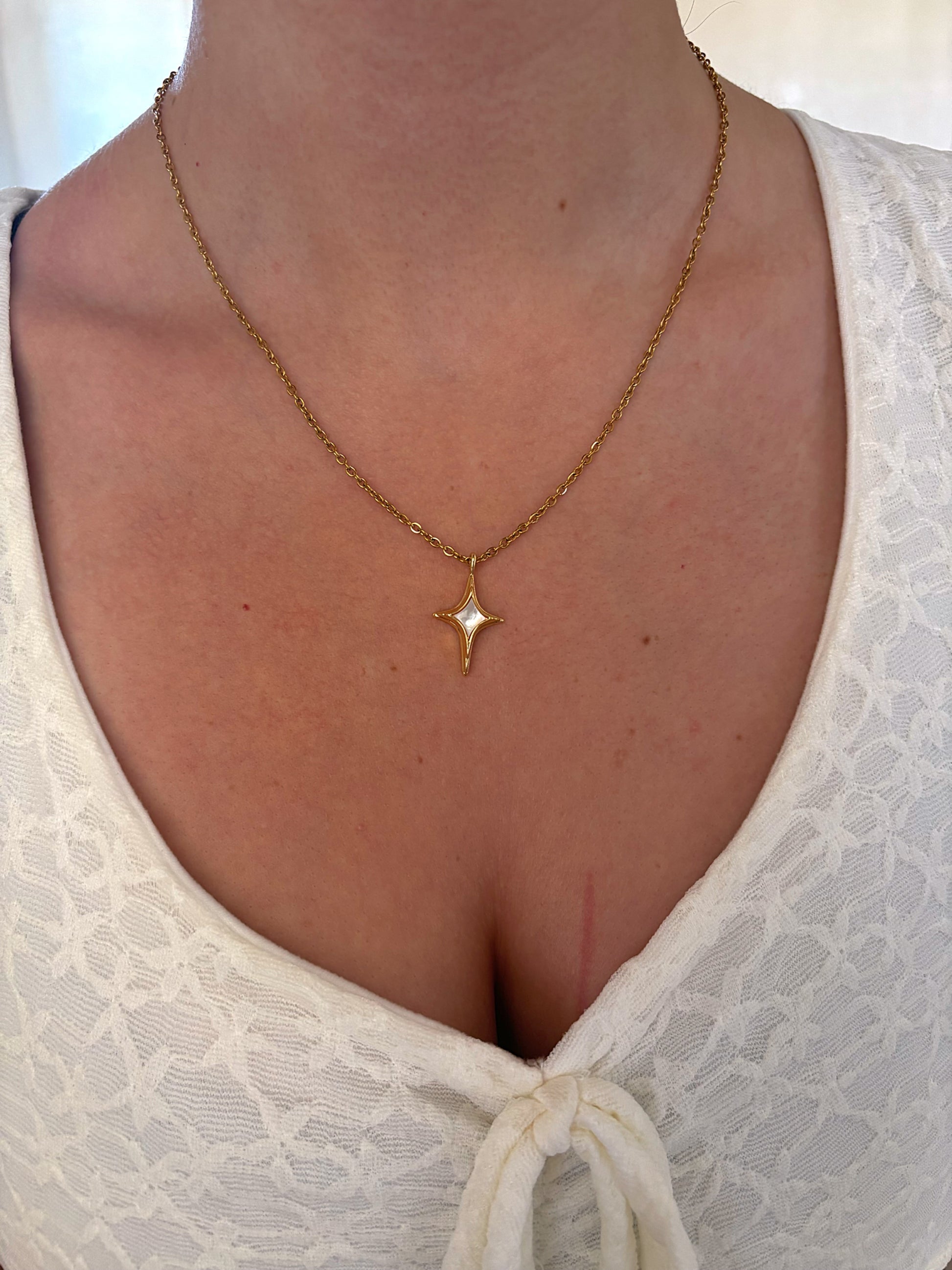 14k gold filled and moonstone charm on stainless steel chain 18in