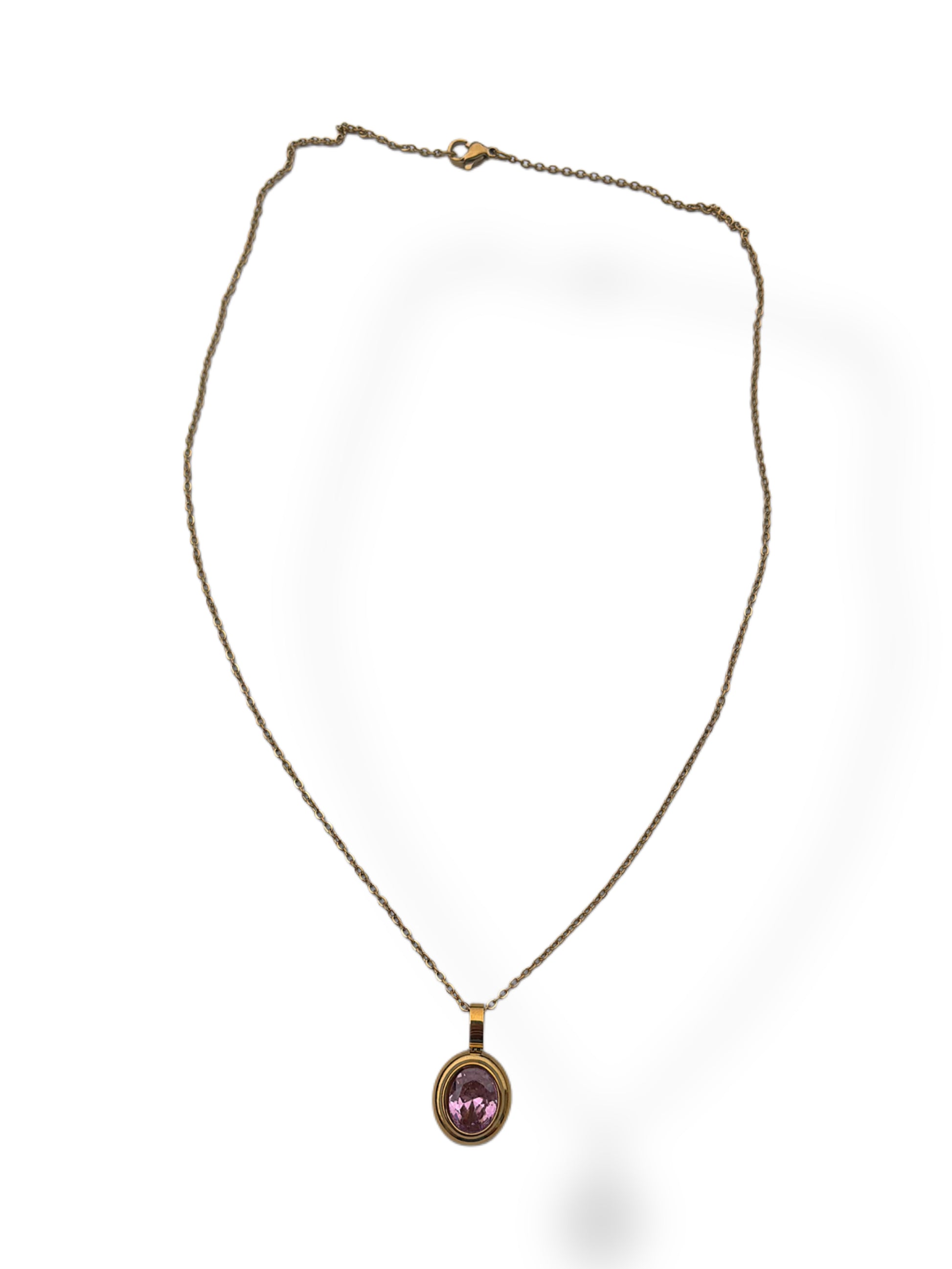 Stainless steel & cubic zirconia bezel charm on stainless steel chain