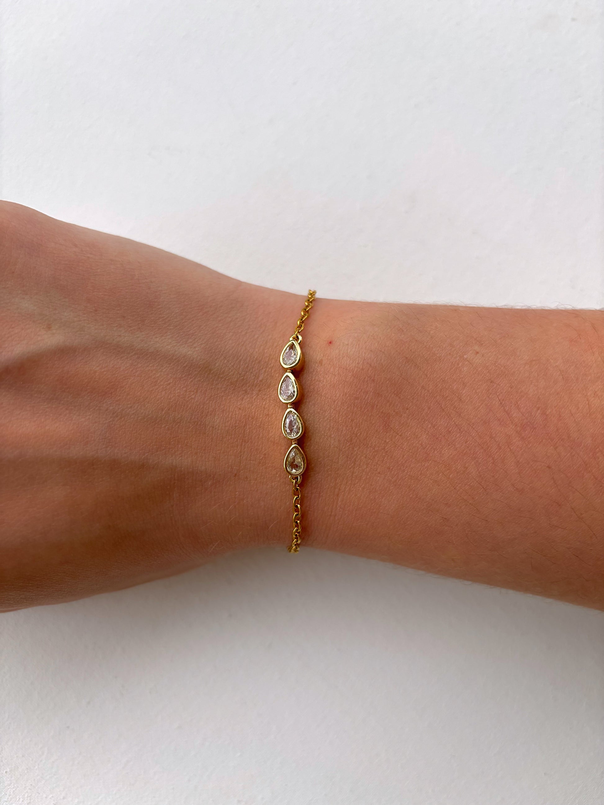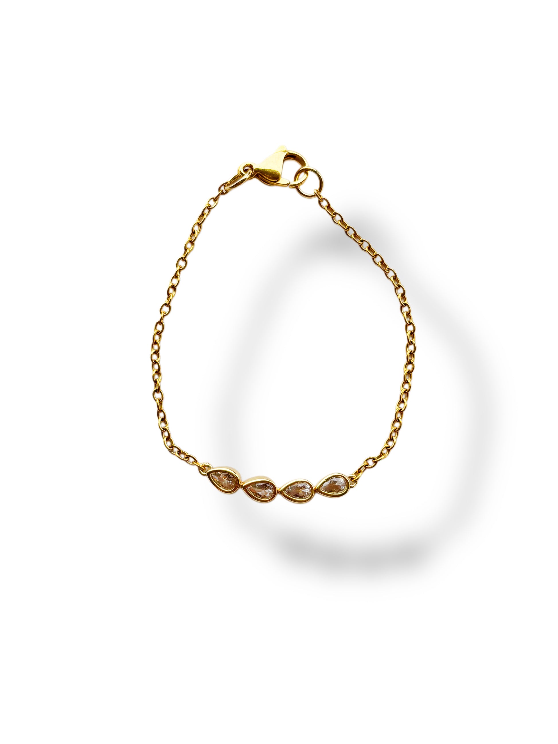 16K gold filled and cubic zirconia bar charm bracelet . The bar is not stiff, it moves to lay flat to your wrist!