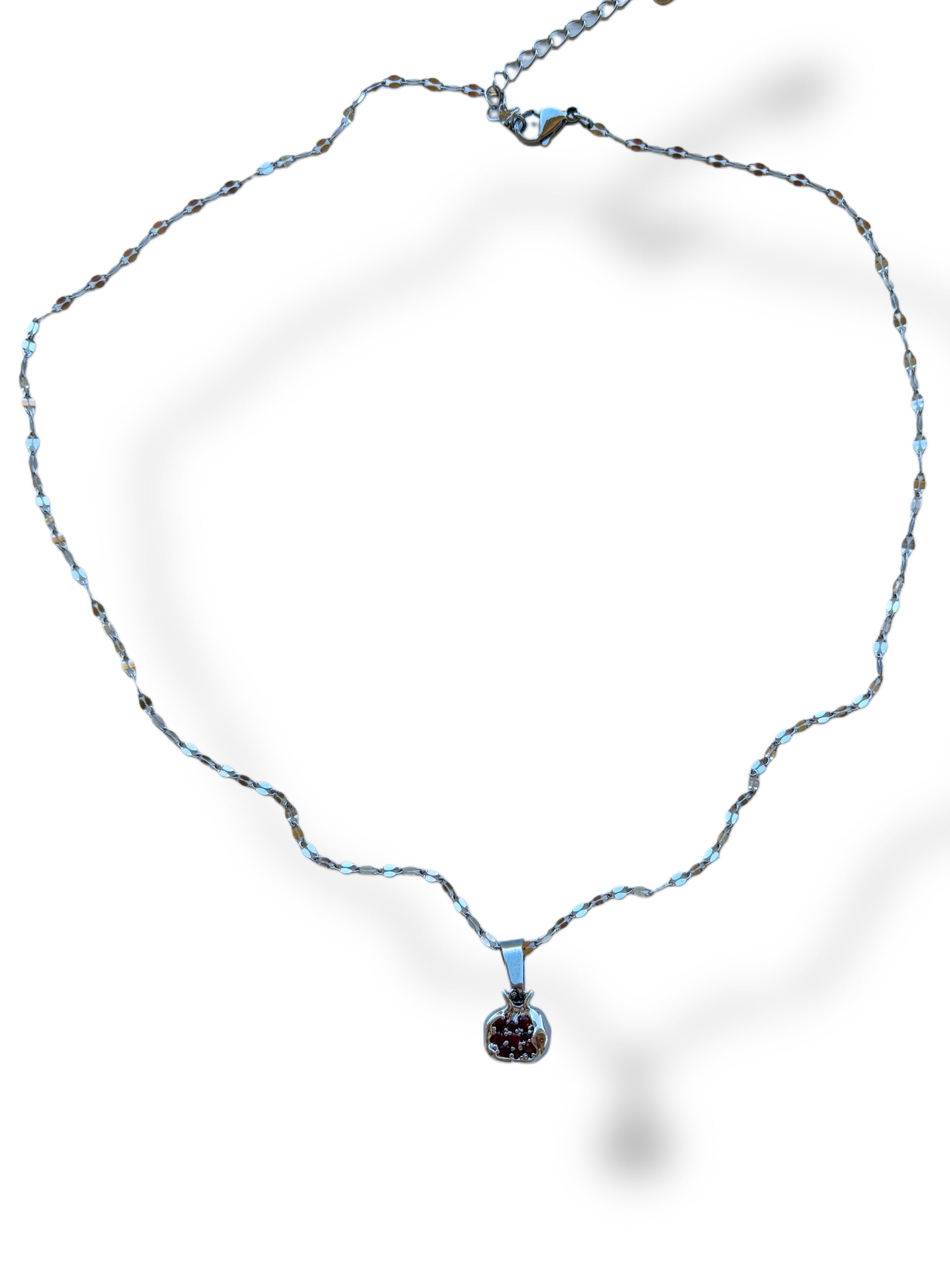 18k gold filled pomegranate charm on stainless steel chain 18in + extension chain